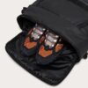 | ویژگی | ابعاد: ۳۵ سانتیمتر طول × ۵۶ سانتیمتر عرض × ۱۹ سانتیمتر ارتفاع, بدنهای مقاوم در برابر ساییدگی و آب، به همراه نوارهای افقی خارجی و لوگوی بیضیشکل Oakley برای هماهنگی با سری محصولات Rover, بندهای کشی داخلی با قفل سگکی برای محکم نگه داشتن وسایل هنگام سفر, پنل پشتی مشبک با طراحی پددار، تنفسی و ساختارمند, جیب مخصوص عینک با آستر میکروفایبر, جیبهای جلویی خارجی با زیپهای پوششدار برای دسترسی سریع, چندین جیب داخلی توریدار با زیپ, دستههای خارجی چندگانه با پد محافظ برای حمل راحت, طراحی قابلتبدیل برای حالتهای مختلف حمل، قابل استفاده به صورت کیف دستی (Messenger) و کولهپشتی, محفظهی اصلی با زیپ دوطرفه که ۳/۴ محیط کیف را پوشش میدهد، برای دسترسی آسان و باز شدن گسترده, محفظهی جداگانه برای کفش برای حفظ نظم داخل کیف |
